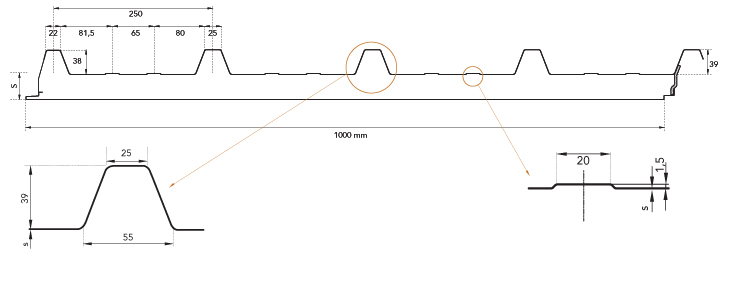 Panneaux isolants à parements en tôle d’acier pour couvertures en discontinu avec des pentes >7% (panneaux utilisables également en bardage avec raccords courbes, bardage/couverture en tôle travaillée type EGB 1250.
